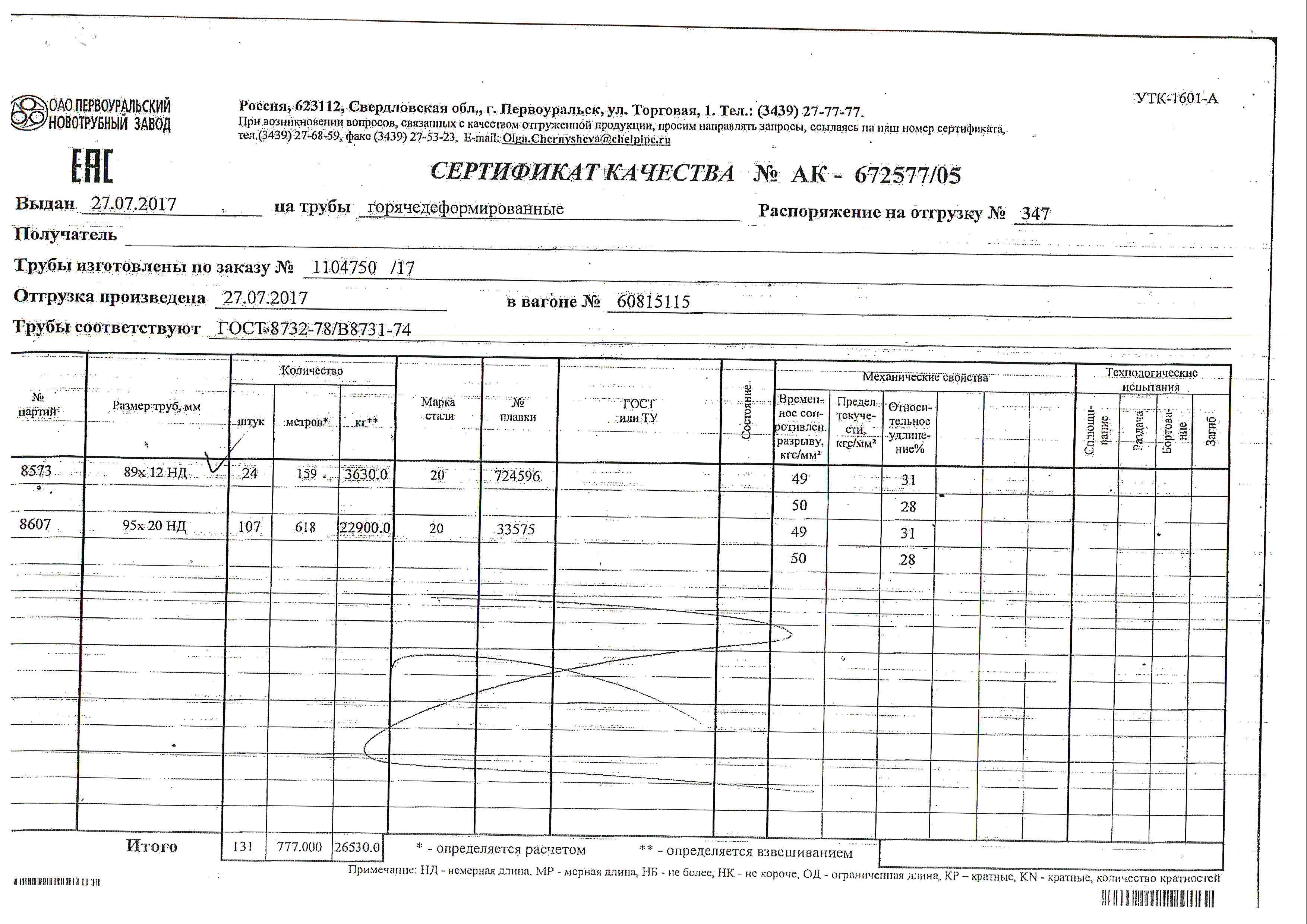 С каждой товарной позицией мы предоставляем все сертификаты и паспорта качества, а также товарно-транспортную накладную.