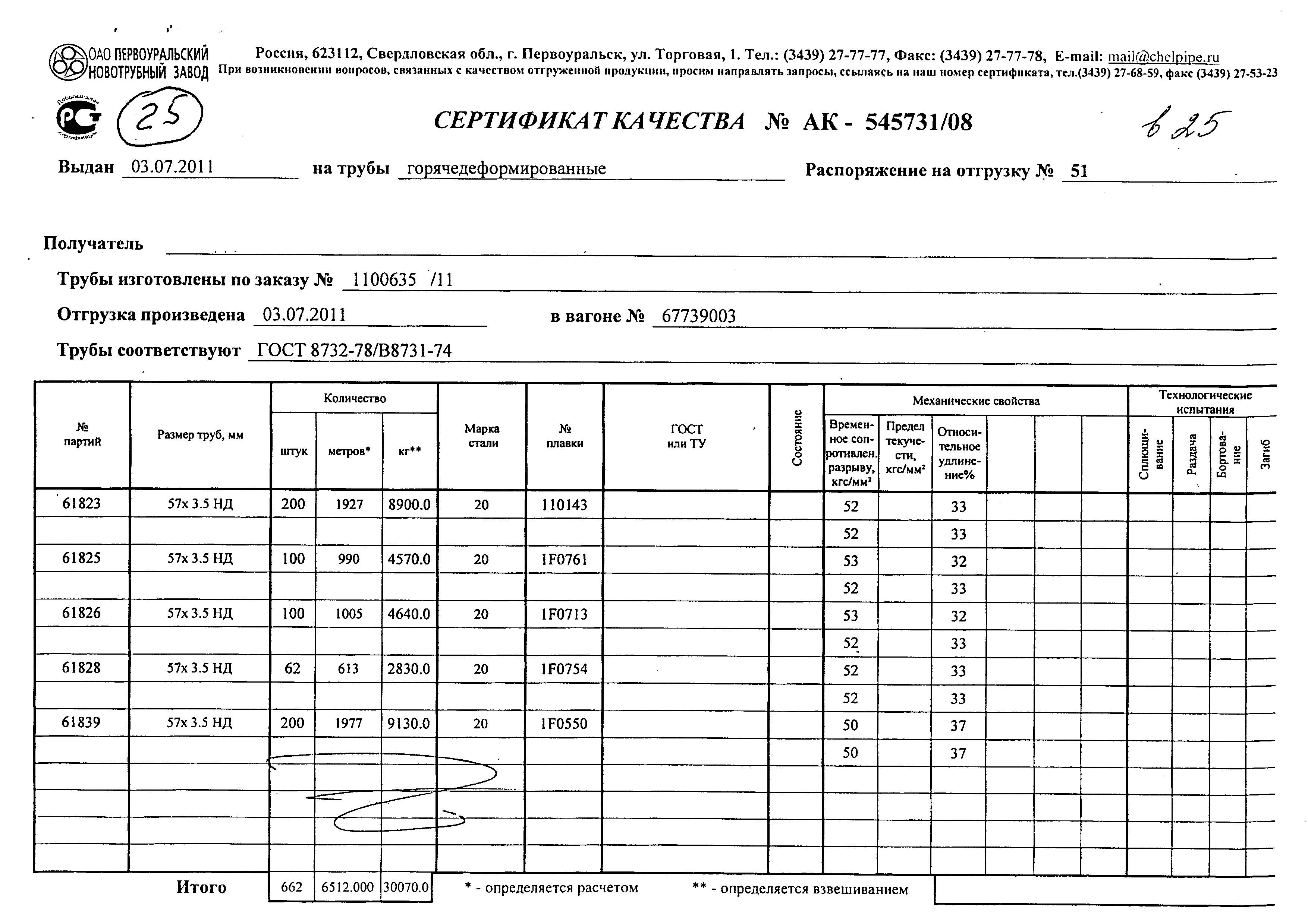 С каждой товарной позицией мы предоставляем все сертификаты и паспорта качества, а также товарно-транспортную накладную.