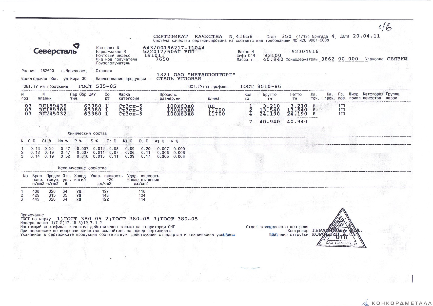 С каждой товарной позицией мы предоставляем все сертификаты и паспорта качества, а также товарно-транспортную накладную.
