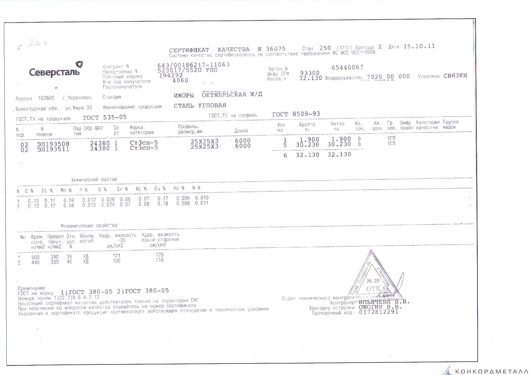 С каждой товарной позицией мы предоставляем все сертификаты и паспорта качества, а также товарно-транспортную накладную.